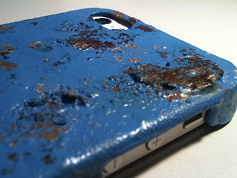 At the time of this writing I’m already filing on my concepts for case #6, which will probably include real rust sections, a 3D printed Shapeways case, salt technique and probably another color than blue this time. Maybe also some crackle paint and vintage prints.